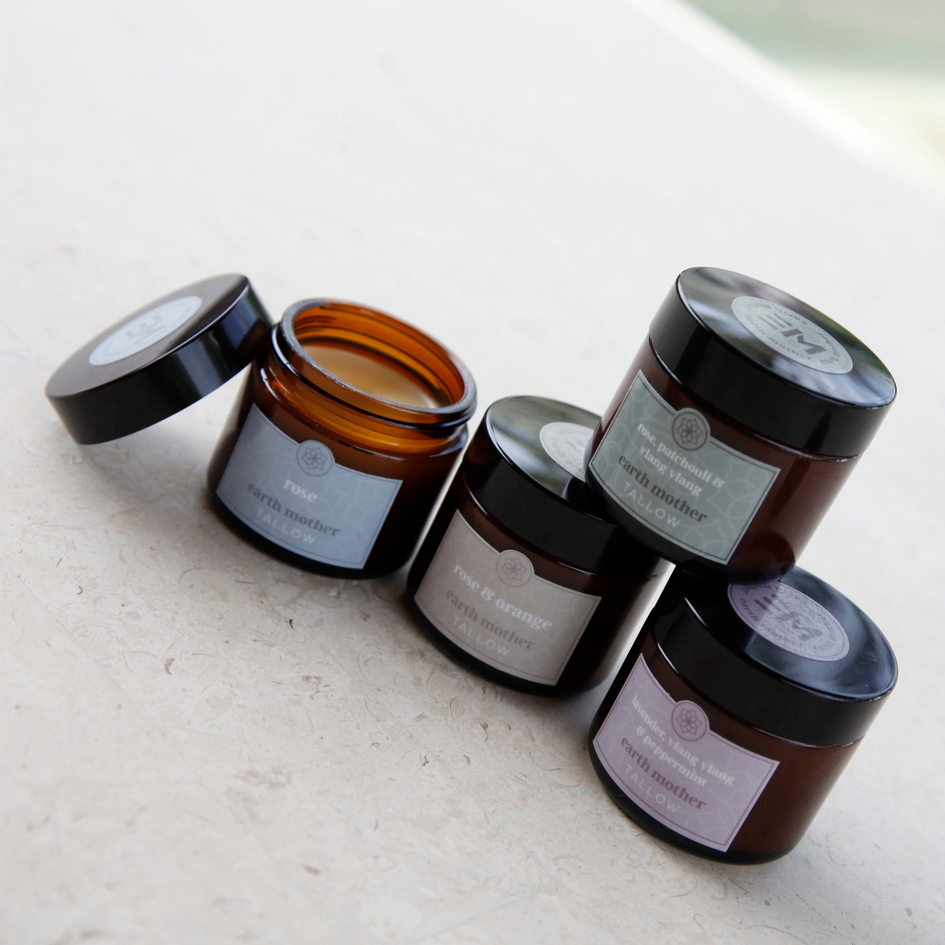 Rose essential oil tallow combines the nourishing properties of tallow with the soothing, aromatic benefits of rose oil. Tallow, rich in vitamins and fatty acids, deeply moisturises and heals the skin, while rose essential oil offers a calming fragrance and anti-inflammatory properties, making it ideal for skin care and rejuvenation.